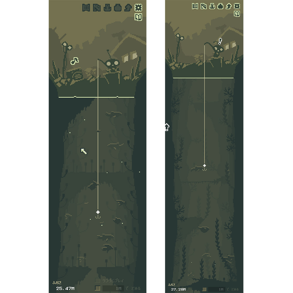 ――ウマーさんの場合は『Fishing The Abyss』では色を絞ってゲームボーイのような表現にしたのでしょうか。それと重要な要素の釣れる生物の絵づくりはどういった考えで生まれたのでしょう。