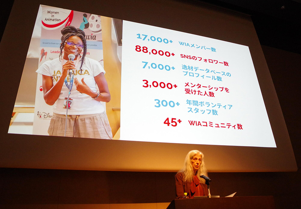 WIAのディーン氏は、教育機関でアニメーションや美術、映像などを学んでいる女性は全体の半数以上に上るが、職業としてアニメーション制作の現場で働いている女性については、比率が大きく下がることについて触れ、「内部外部的に何かしらの力が働いていたり、基本的にボーイズクラブで女性が発言できなかったりした」ことが原因だと指摘し、WIAとして状況の改善に取り組んでいることを紹介した。
